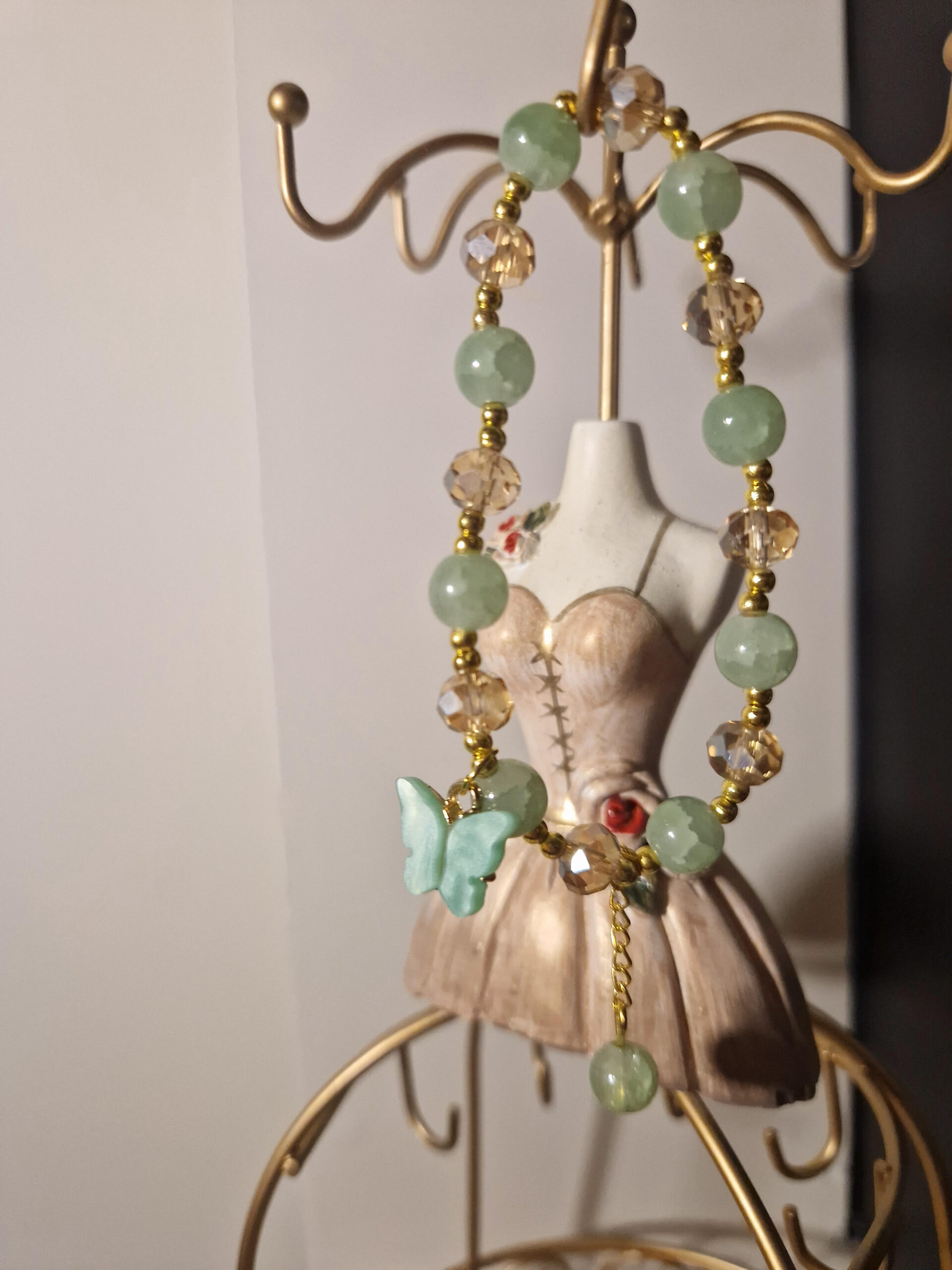 De vlinder armband bestaat uit mooie kristallen aan de binnenkant van de kralen die er om heen zitten. Het is echt een meisjessieraad en is leuk om cadeau te geven. Goedkoop en mooi.
